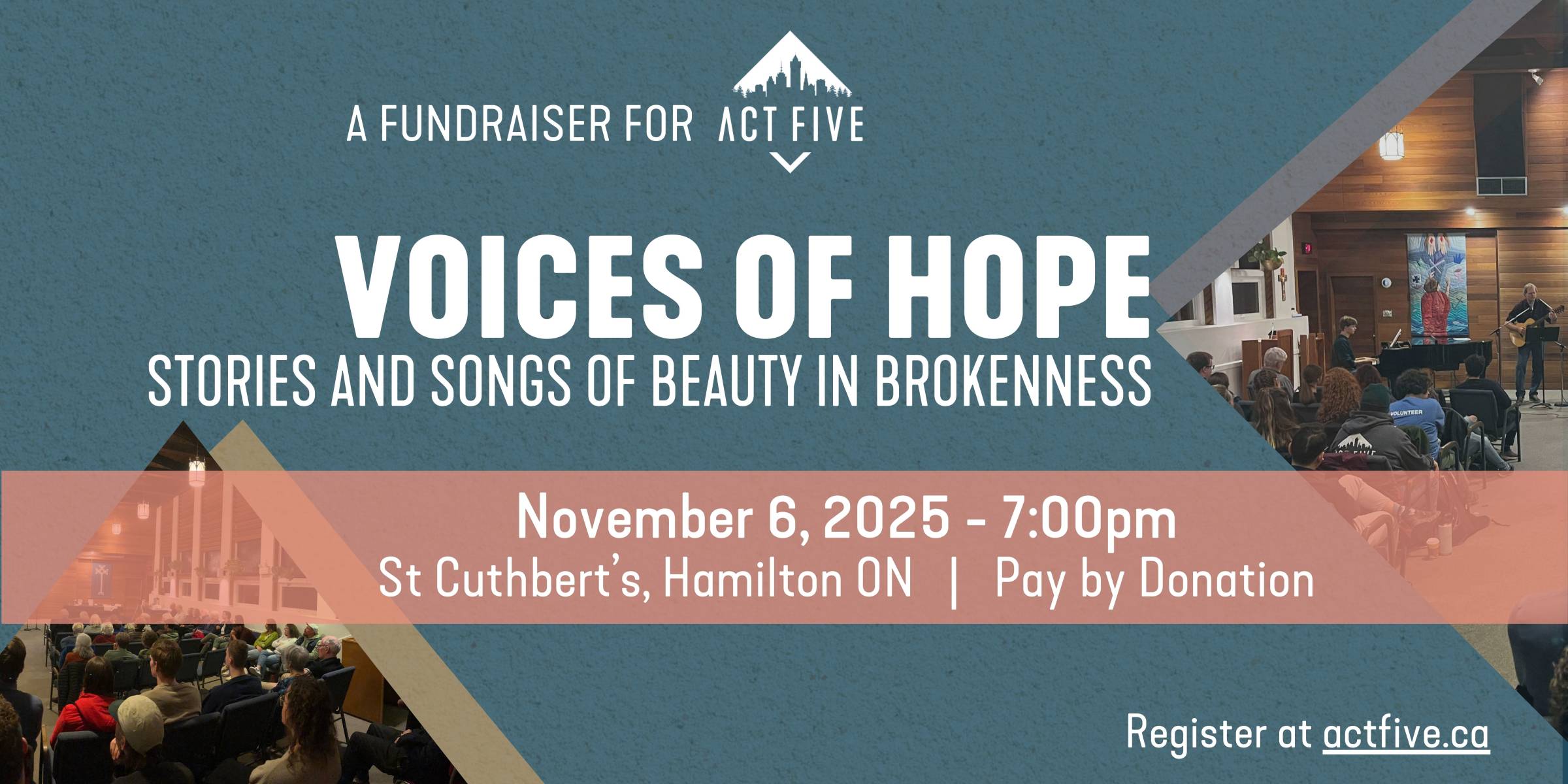 You’re invite to an evening of stories of those who have experienced beauty in places of brokenness. You’ll hear from some Act Five Alumni and Staff, a Hamilton community members, and two local musicians. It’ll be an evening you won’t want to miss!